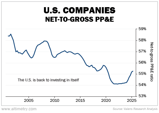 By 2010, that metric dropped to between 56% and 57%. While it started ticking up by the end of Trump's first term, the pandemic took a toll. Companies put their investments on hold.