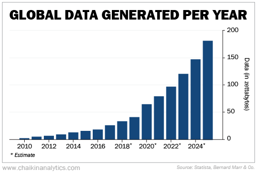 And that's forecast to grow by another 50% by 2025, or by 60 zettabytes. That's more than all the data the world produced between 2010 to 2016.